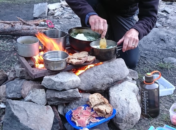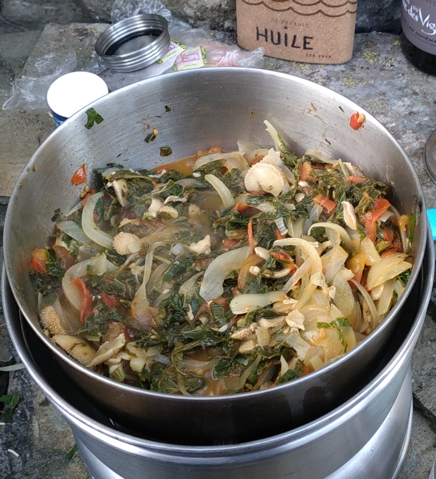 Au bivouac ou dans une cuisine confortable, la préparation du repas est réalisée collectivement par les participants. Les groupes sont limités à 8 personnes pour maintenir un bon niveau de confort dans les échanges. En cuisine, on utilise les « herbes sauvages » pour plusieurs raisons : des raisons nutritionnelles (liées à notre santé), pour apporter de nouvelles saveurs (gastronomie), ou encore comme nourriture de survie. Se limiter aux quelques plantes cultivées pour notre alimentation est véritablement un appauvrissement, l’utilisation des plantes sauvages élargie le champ des possibles. La peur de s’empoisonner est souvent présente mais la réalité est autre car d’une part de très nombreuses plantes sauvages ne présentent pas de problème de toxicité supérieur à nos plantes domestiquées et d’autre part, il est possible d’en détoxifier certaines en adaptant le mode de préparation pour éliminer ou détruire les principes toxiques. Ainsi les Japonais mangent-ils de la fougère aigle, pourtant réputée toxique ! Mais ils font subir à la plante une lente préparation dont ils ont le secret.